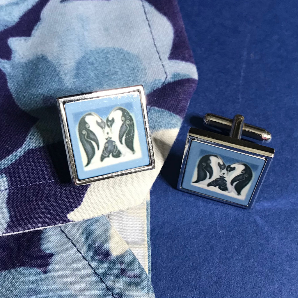Fun Penguin Family Cuff Links. Wonderful cool crisp blues. Great present for any wildlife and nature loving friend or partner.